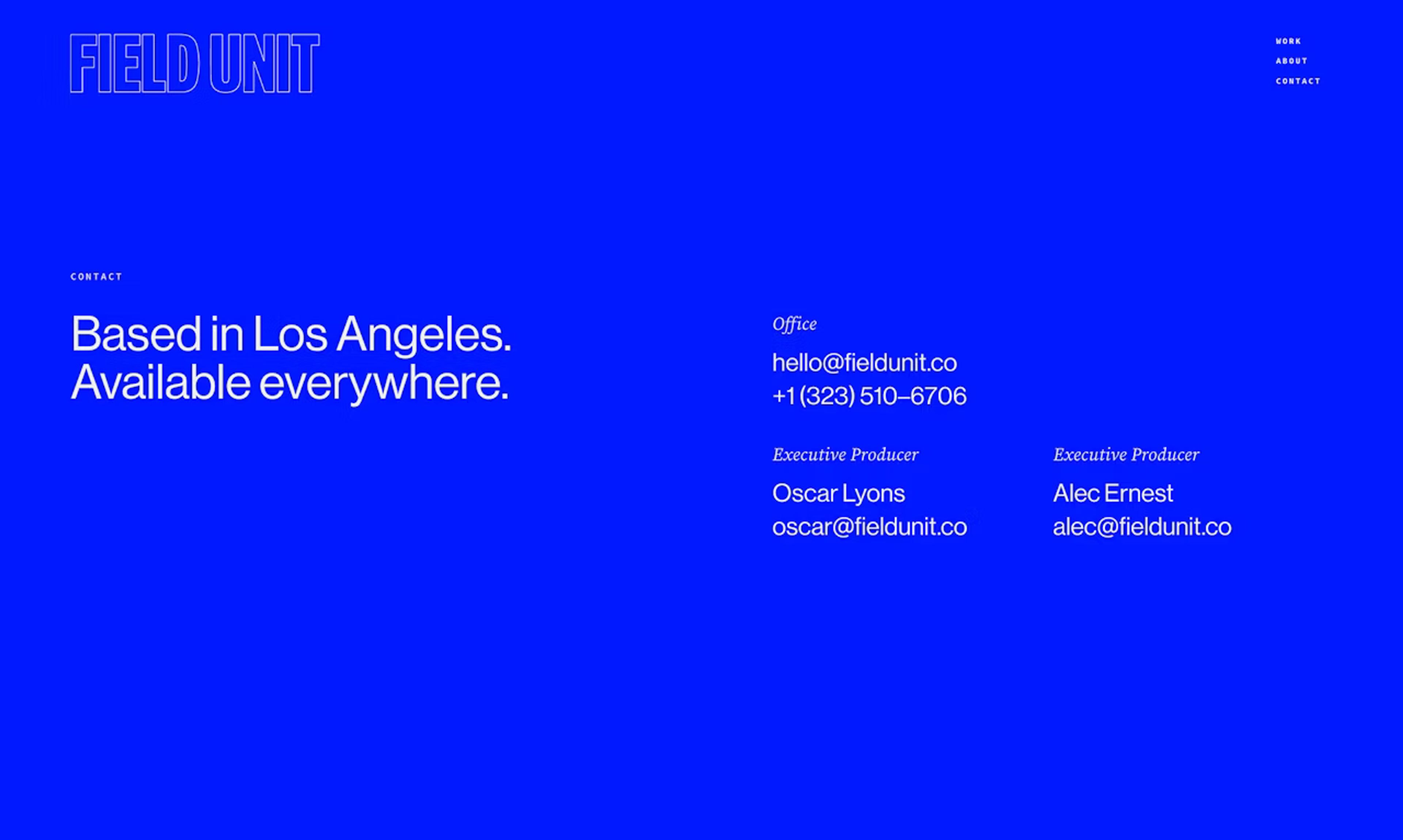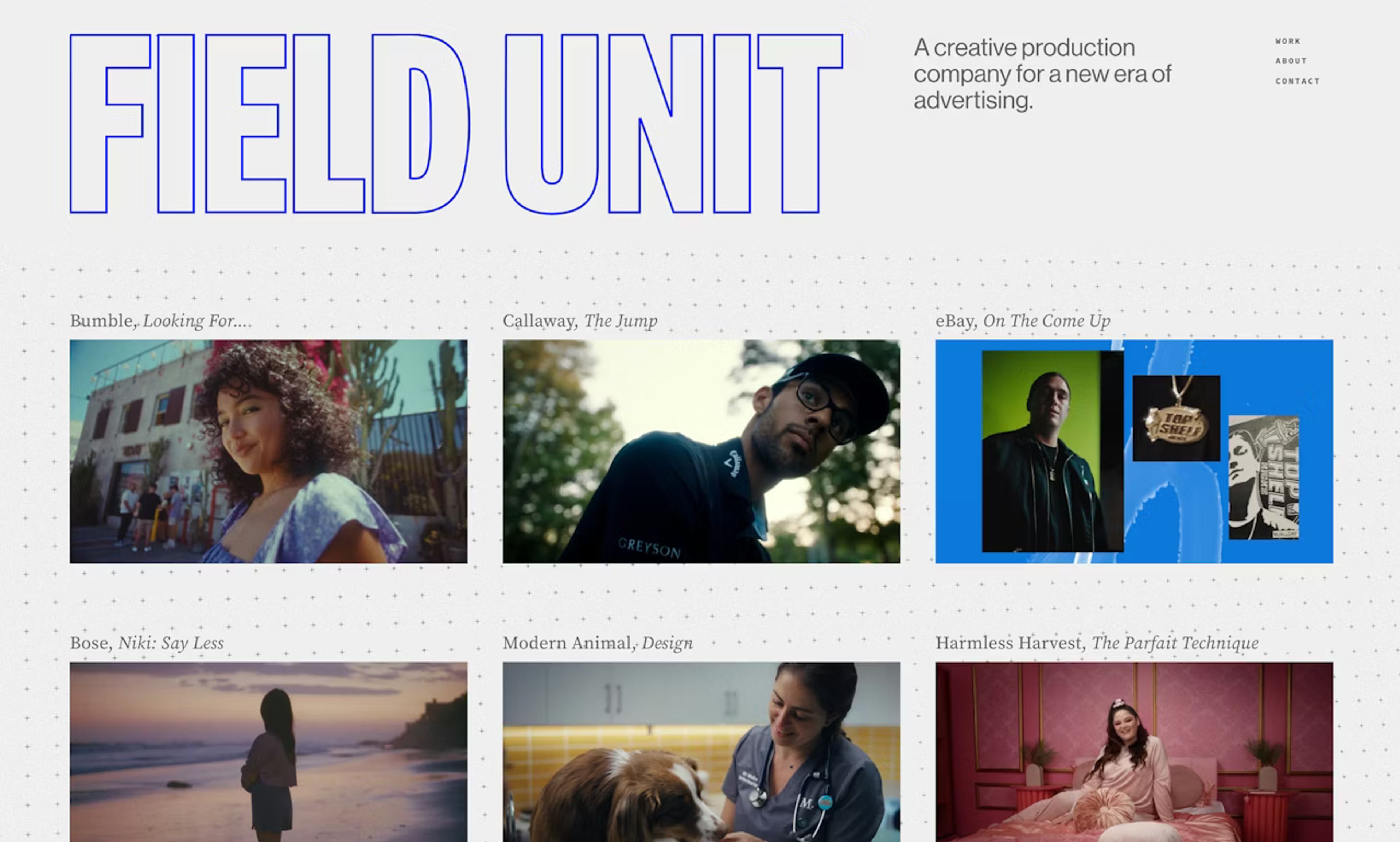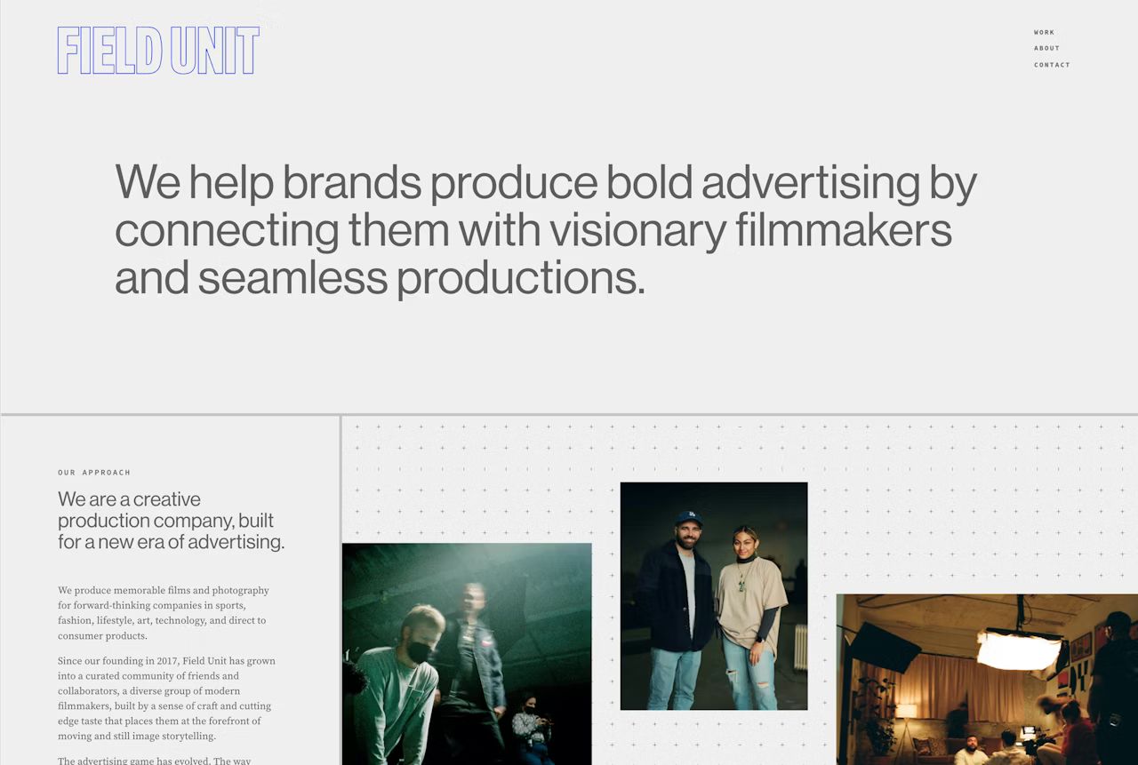 We developed the website for Field Unit, a Los Angeles–based production company creating bold films through a curated network of modern filmmakers.