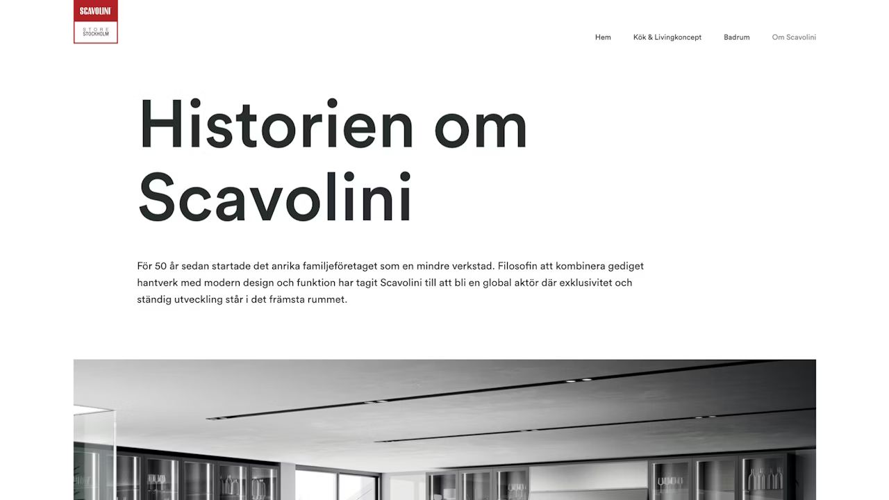 For the launch of Scavolini’s Stockholm store back in 2019, we designed and developed a website that reflects the brand’s position as Italy’s largest kitchen manufacturer and a global leader in kitchens and bathrooms.